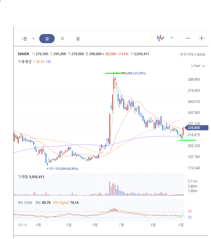 네이버 6월에 장대양봉 나옴