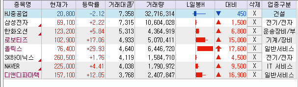 가끔 보면 차트도 보기 싫은 종목들 있고 안 보는데