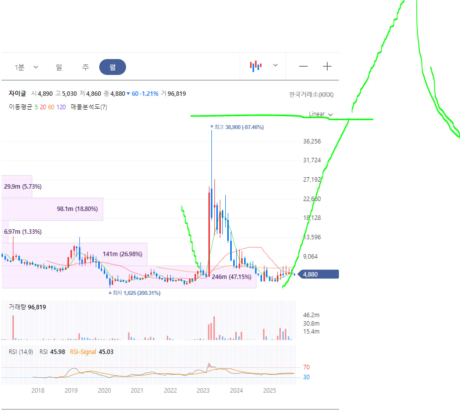 차트를 보면 주봉에서 매집하는 차트가 그려졌는데