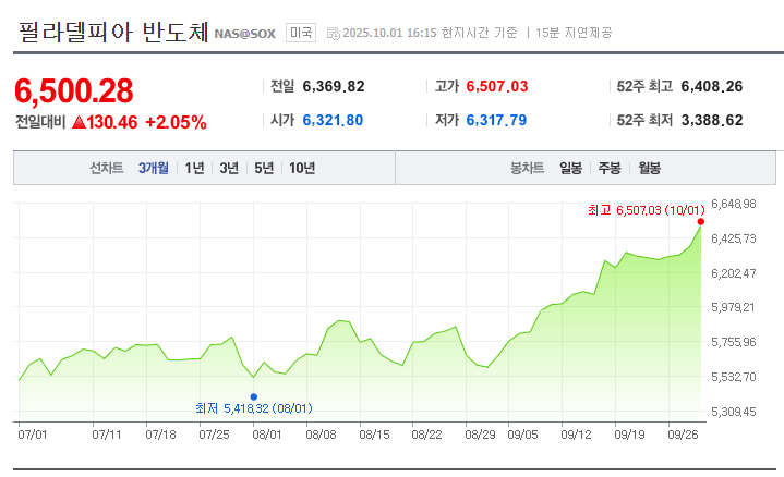 필라델피아 반도체 지수 역사적 신고 경신