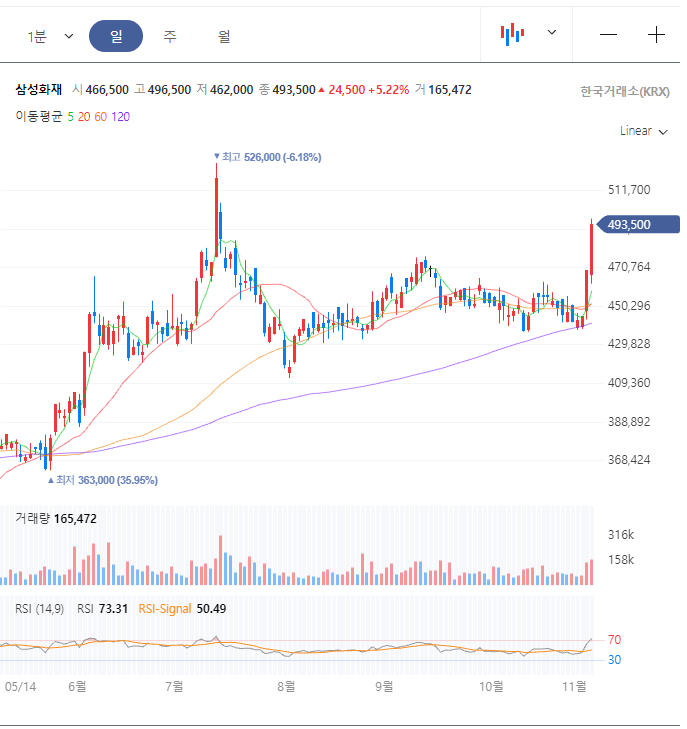 단순 보험이 좋다는 뜻이 아니라 지금 상승장이 끝나지 않아서 금융주들이 아직도 살아있다는 소리입니다