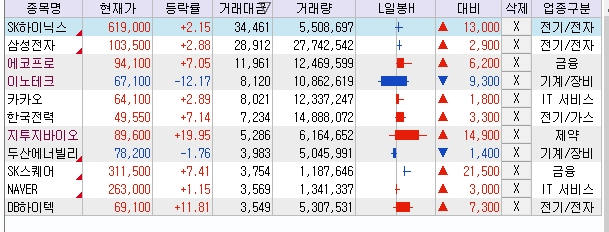↑ 시장의 중심이 되는 종목들