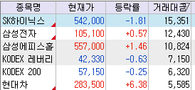전날에 본 종목들 시장에서 가장 주목 받는 종목들을 보죠