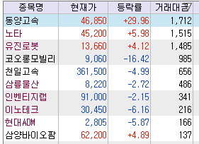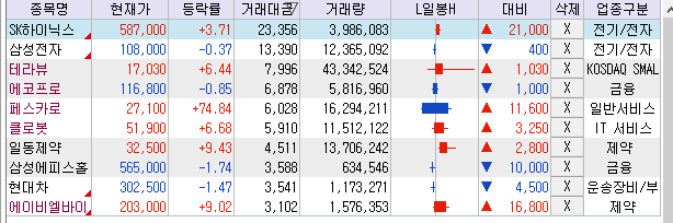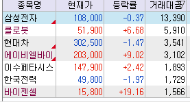 ↑ 시장의 중심이 되는 종목들
