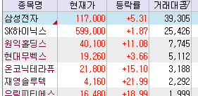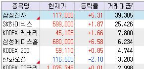 ↑ 시장의 중심이 되는 종목들