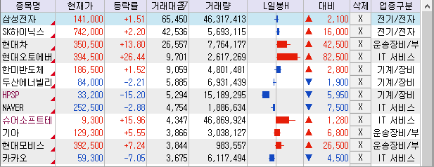 아마도 지금 삼성전자 SK하이닉스 현대차 크게 오를거 같으니까