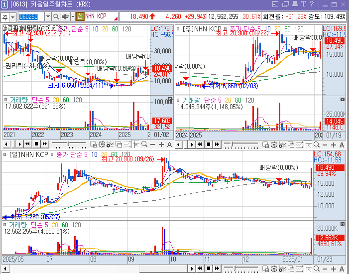 ↑ 월봉상 신고가인 상한가 종목