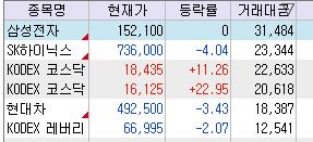 ↑ 시장의 중심이 되는 종목들