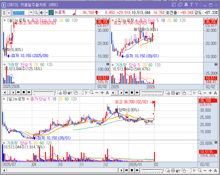 ↑ 월봉상 신고가인 상한가 종목