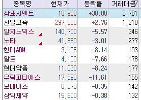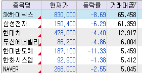 ↑ 시장의 중심이 되는 종목들